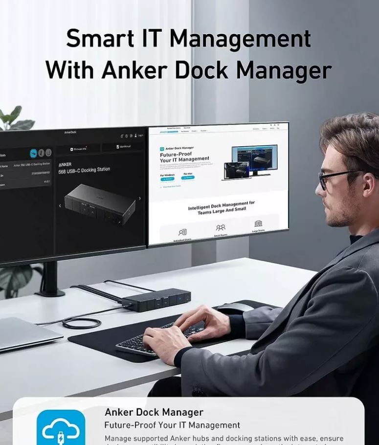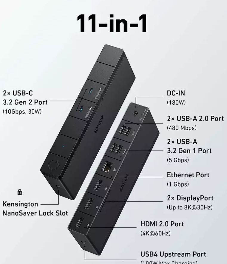 Docking Station Anker 568 11-in-1, pana la 100W pentru laptop, 40Gbps Data Transfer, USB4, 8K, Triple 4K Display, Ethernet, USB-A, USB-C, Negru