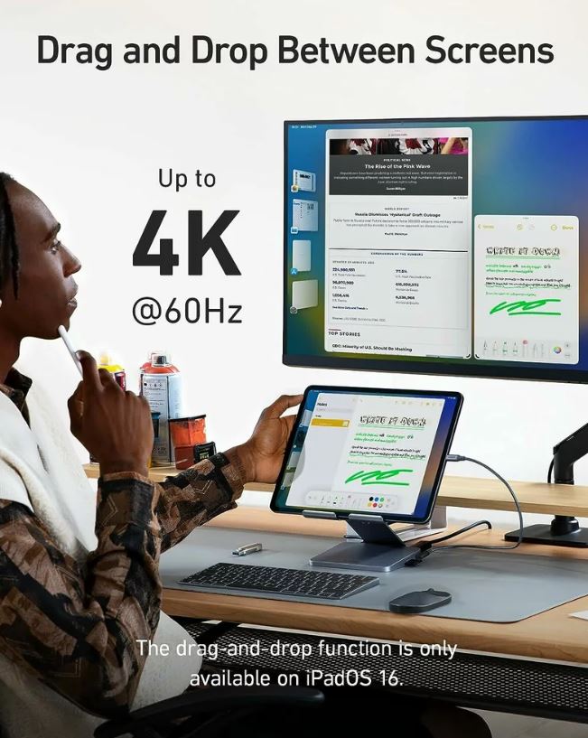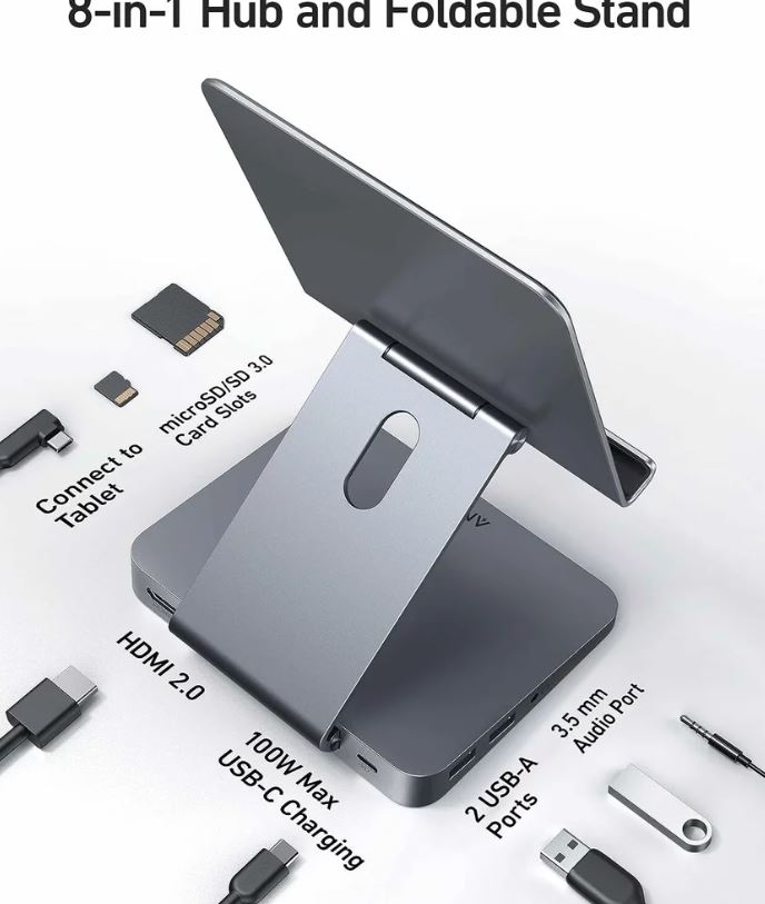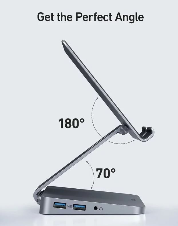 Anker 551 este un hub puternic si un suport pliabil care va permite sa va conectati la un monitor extern si la mai multe alte dispozitive pentru a va transforma iPad-ul intr-o statie de lucru.