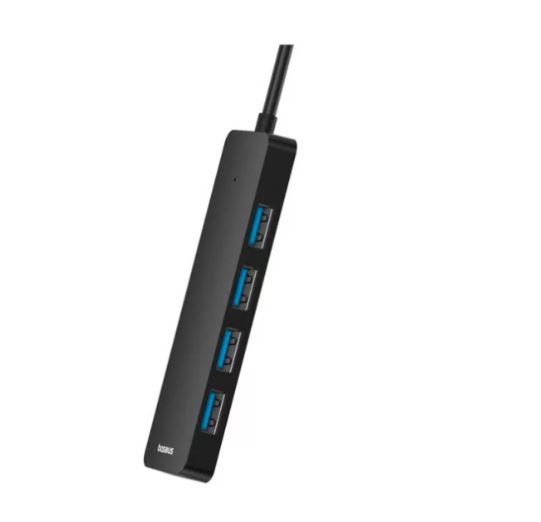 Hub Baseus UltraJoy 4-in-1 Lite, USB-A la 4xUSB-A 3.0, 5Gbps, Negru cu cablu de 100cm