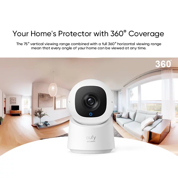 Camera de supraveghere eufy Security C220 Indoor cu rezolutie 2K inteligenta artificiala, vedere de 360°, stocare locala si Night Vision pentru supraveghere completa.