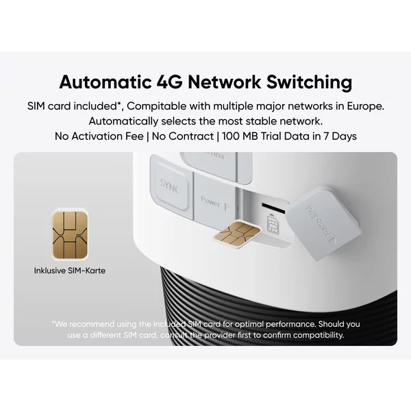 Este compatibila cu HomeBase S380. Include cartela SIM, compatibila cu principalii operatori de telefonie mobila din Europa.