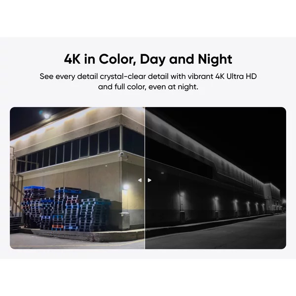 Camera de inalta rezolutie 4K surprinde numerele de inmatriculare de la pana la 10 m distanta in detaliu. Cu reflectorul de 100 de lumeni, culorile si detaliile vibrante sunt vizibile pana la 8 m distanta - chiar si in intuneric.