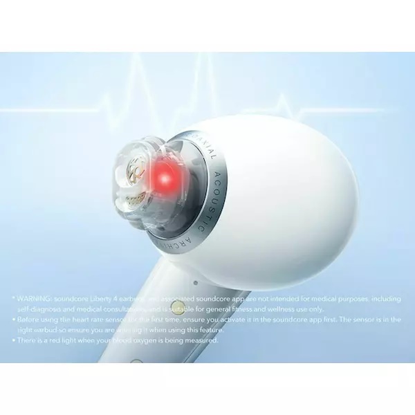 Senzorul de ritm cardiac in ureche urmareste ritmul cardiac in timp ce ascultati pe parcursul zilei. Verificati datele zilnice, utilizati in timp ce faceti exercitii fizice si multe altele prin intermediul aplicatiei Soundcore Wellness.