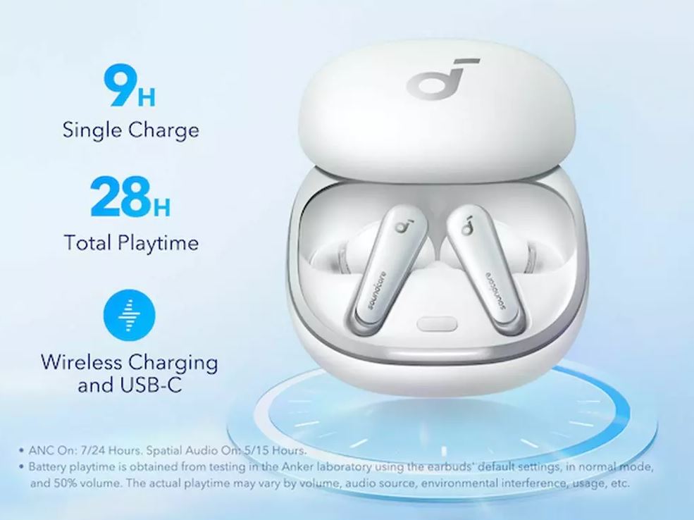 Reincarca carcasa castilor True Wireless Anker SoundCore Liberty 4 cu un incarcator wireless sau cu un cablu USB-C. Durata de redare a castilor se prelungeste pana la 28 de ore cu ajutorul carcasei si poti obtine pana la 3 ore de ascultare de la o incarcare de 15 minute.