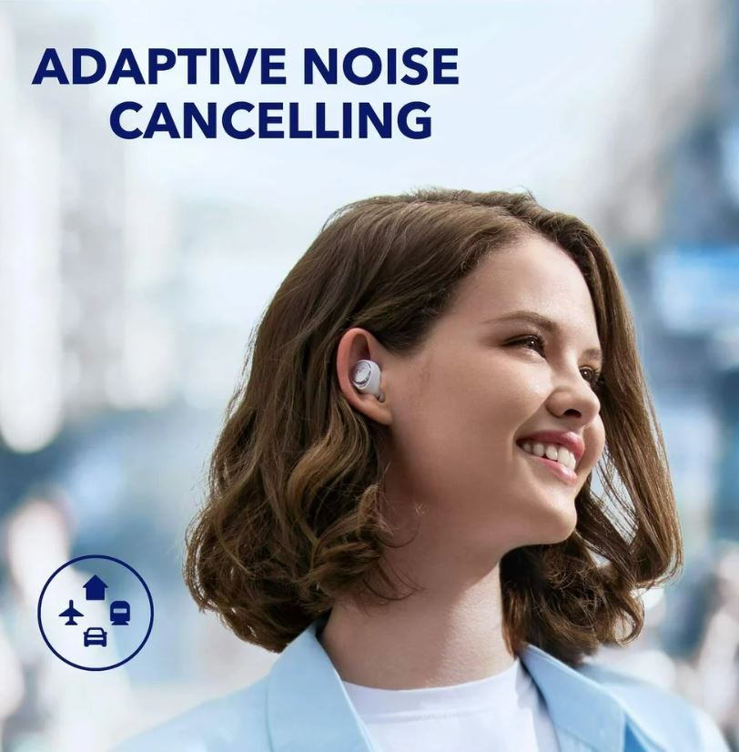 Castile Anker Soundcore Space A40 detecteaza zgomotele externe si selecteaza automat un nivel adecvat de anulare a zgomotului in functie de mediul inconjurator. Bucurati-va de spatiul dvs. personal, indiferent daca va aflati in interior, in aer liber, in timpul navetei sau in timpul zborului.