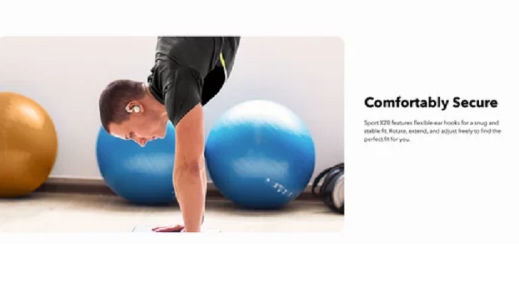 Castile de antrenament Sport X20 sunt echipate cu carlige pentru urechi reglabile care pot fi extinse si rotite pentru o potrivire confortabila si sigura. Cu rotire de pana la 30 de grade si extensie de 4 mm, personalizati pozitia pentru a va potrivi perfect.