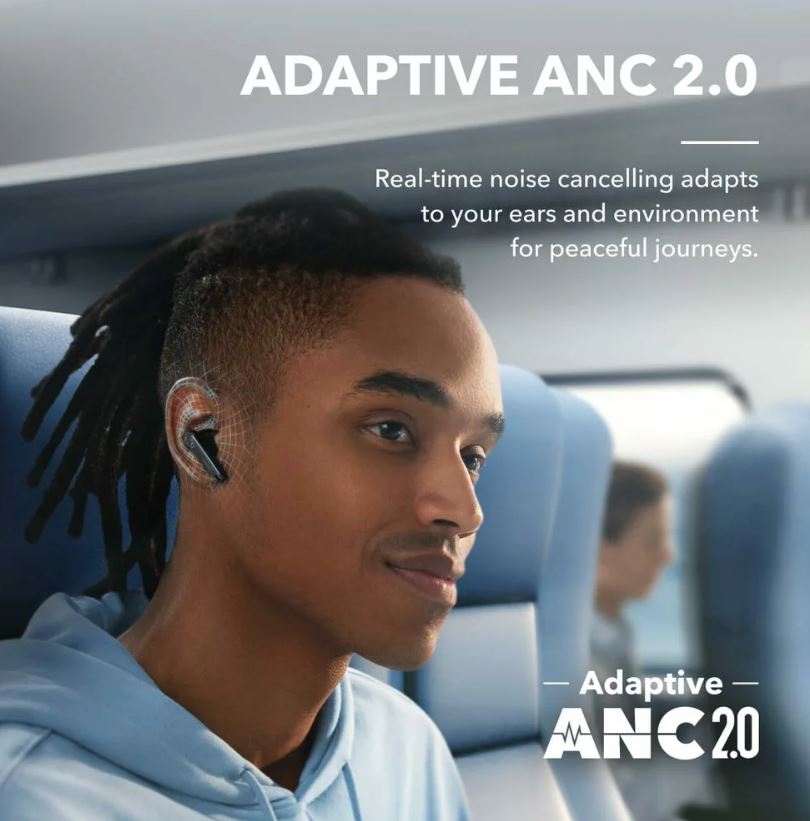 Tehnologia Adaptive ANC 2.0 face calcule in timp real si se adapteaza la canalele urechilor si la mediul extern pentru o liniste maxima in mijlocul agitatiei.
