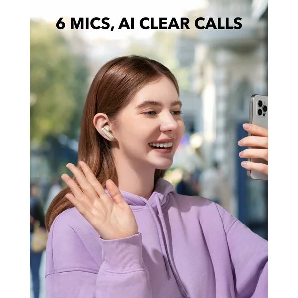 Castile Soundcore P40i cu anulare a zgomotului imbunatatite cu 6 microfoane si un algoritm AI va permit sa va bucurati de o comunicare clara. Fie la un apel sau prin chat video, vocea ta este transmisa cu claritate si putere.
