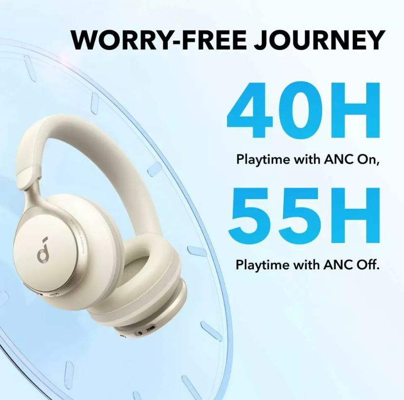 Imbarcati-va in calatorii cu 40 de ore de redare cu ANC activat. 55 de ore de muzica continua cu ANC dezactivat asigura divertisment fara sfarsit, fara griji legate de baterie.