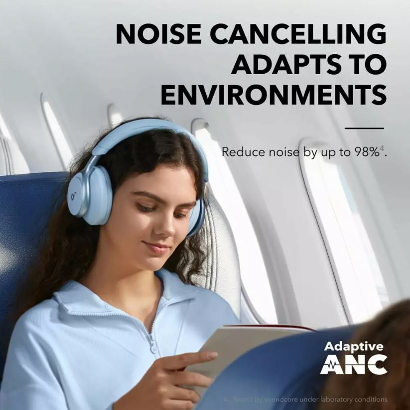 Anularea adaptiva a zgomotului detecteaza sunetele externe si scurgerile de sunet, calibrandu-se automat pentru a oferi o reducere optima a zgomotului. Scapati de distragerile nedorite, indiferent daca va aflati intr-un tren zgomotos, intr-o cafenea agitata sau daca castile nu sunt asezate corect pe urechi. *Testat de Soundcore in conditii de laborator.