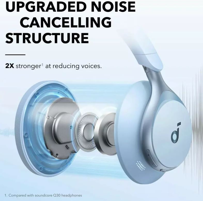 Casti Wireless Over-Ear Anker Soundcore Space One, Adaptive Active Noise Cancelling, LDAC Hi-Res, Bluetooth 5.3 Albastru deschis