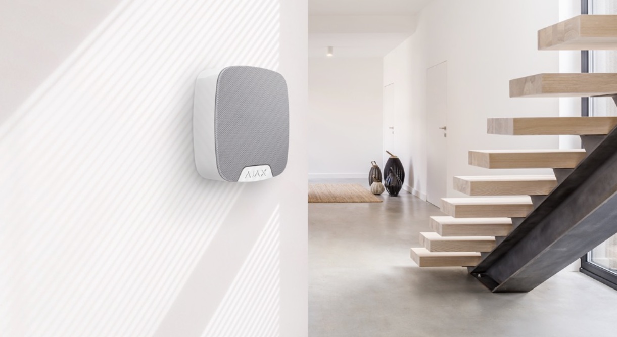 HomeSiren este un dispozitiv inteligent de interior care face mai mult decât să alerteze alarme. De asemenea, poate servi ca indicator de stare de securitate, poate notifica deschiderile de uși și poate afișa întârzierile la intrare sau ieșire și după alarmă. Dispozitivul funcționează autonom cu baterii preinstalate timp de până la 5 ani și folosește protocolul radio wireless Jeweler pentru a comunica cu un hub sau un range extender la o distanță de până la 2.000 m. HomeSiren este protejat la nivel hardware și software și ușor de controlat prin aplicațiile Ajax.