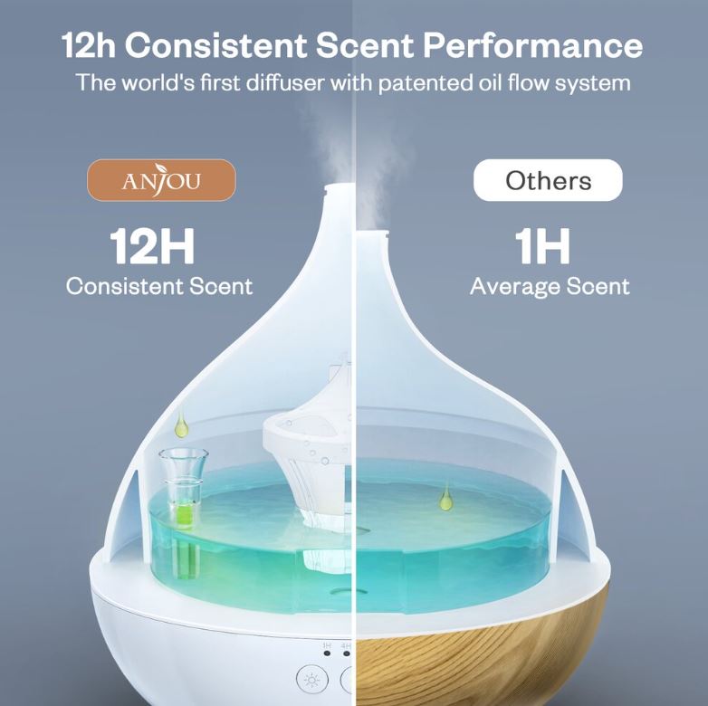 Difuzorul de aroma Anjou AJ-AD012 aduce un miros minunat in camera dumneavoastra, perfect pentru crearea unui mediu relaxat. Adauga umezeala esentiala si creste calitatea aerului in camera ta.
