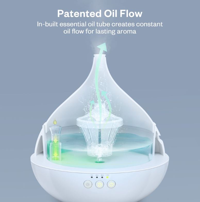 Apa adaugata in recipient este amestecata cu uleiuri esentiale parfumate, iar prin tehnologia cu ultrasunete aceasta este transformata intr-un abur fin si parfumat, care este apoi eliberat in intreaga incapere. Puteti alege 3 moduri de utilizare.