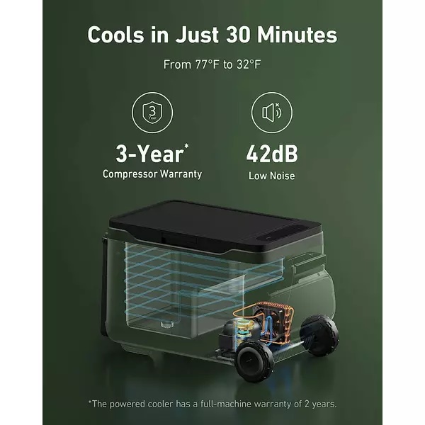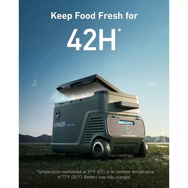 Anker EverFrost Cooler are o autonomie de 42 de ore si poate fi alimentat de la un panou solar pentru autonomie nelimitata.
