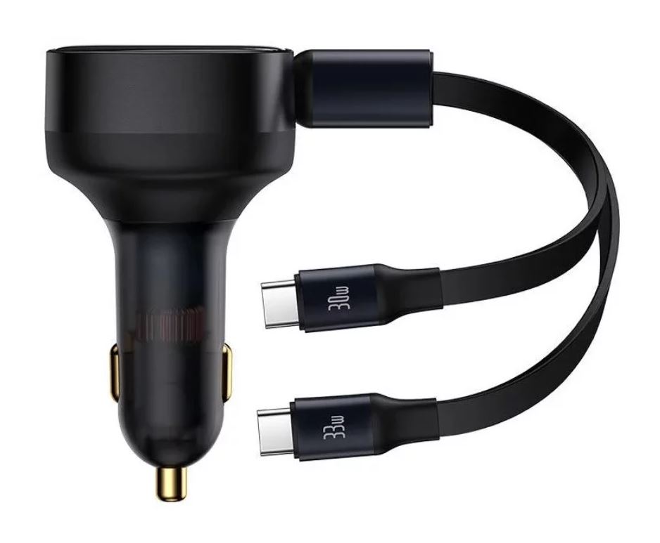 Incarcator auto Baseus Enjoyment, 33W, cu cablu retractabil 2xUSB-C, Negru
