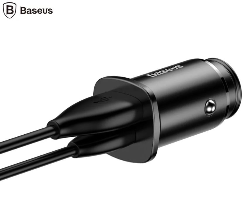 Incarcator auto Baseus Square, 30W, 1xUSB, 1xUSB-C, 5A, Negru