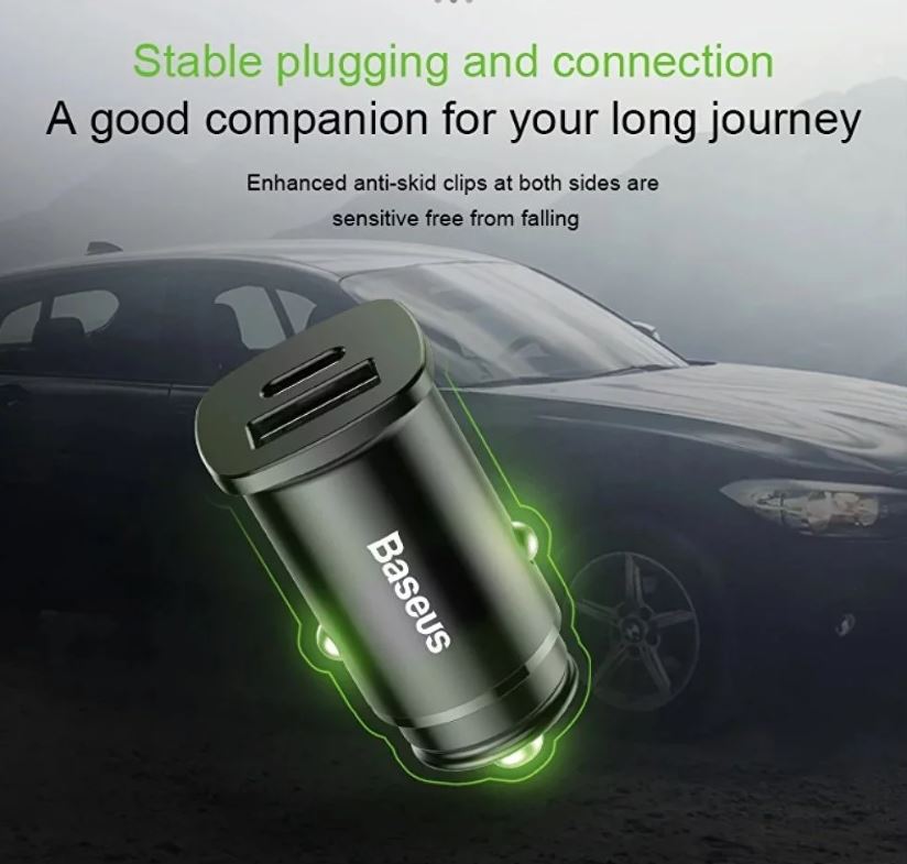 Baseus Square este un incarcator rapid pentru masini ce accepta multe standarde de incarcare rapida si este dotat cu un port USB si unul USB-C. Dispozitivul accepta tehnologii de incarcare rapida, cum ar fi QC 4.0, PD 3.0, Huawei SCP, Samsung AFC, MTK PE.