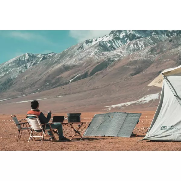 Incarcati mai repede statia de alimentare portabila cu acest panou solar doi in unul. Cu o parte frontala de 220W si o parte din spate de 155W pentru lumina ambientala, puteti obtine un plus de energie solara de 5-25%, in functie de tipul de suprafata pe care il puneti.