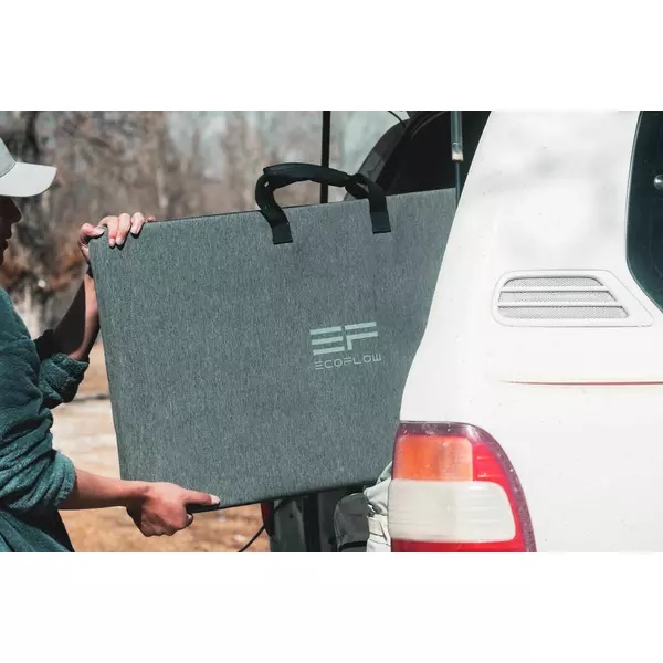Panoul solar bifacial EcoFlow 220W este pliabil, compact si cantareste doar 9,5 kg. Usor de luat si de transportat cu tine, este perfect pentru a incarca acolo unde nu este disponibila o retea de curent.