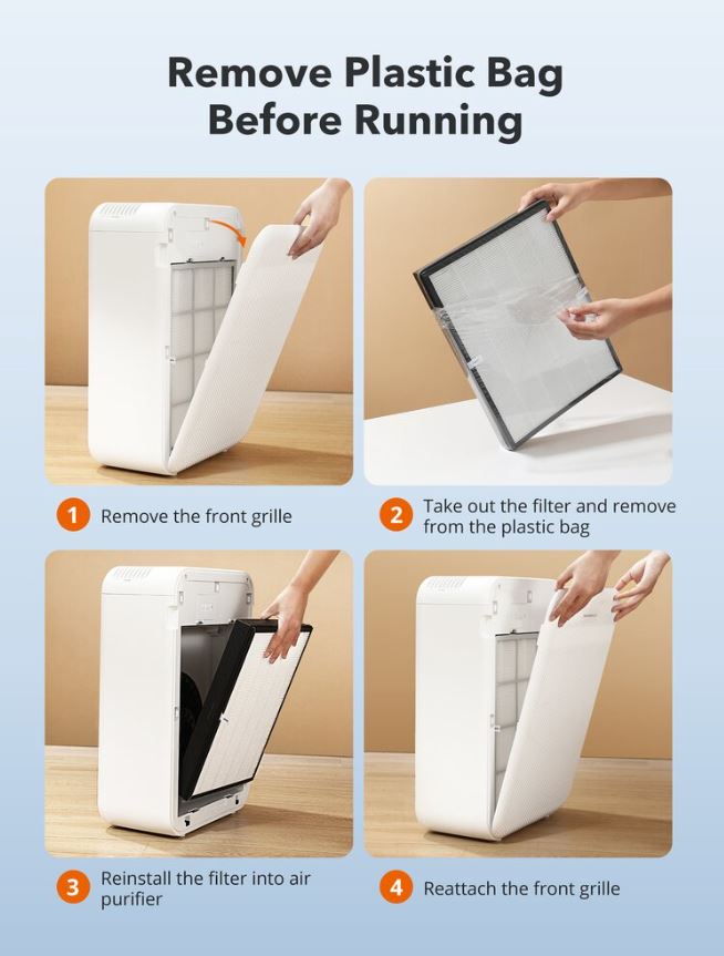 Indicatorul de pe panoul de control va clipi pentru a va reaminti sa inlocuiti filtrul sau puteti inlocui filtrul in functie de calitatea aerului din zona.