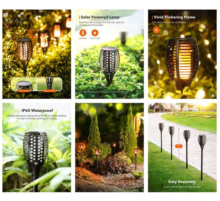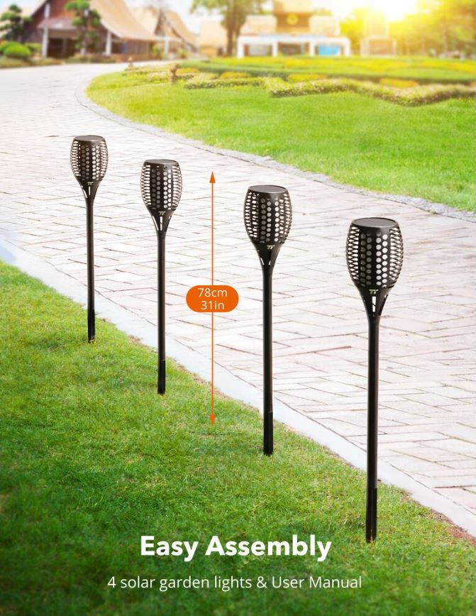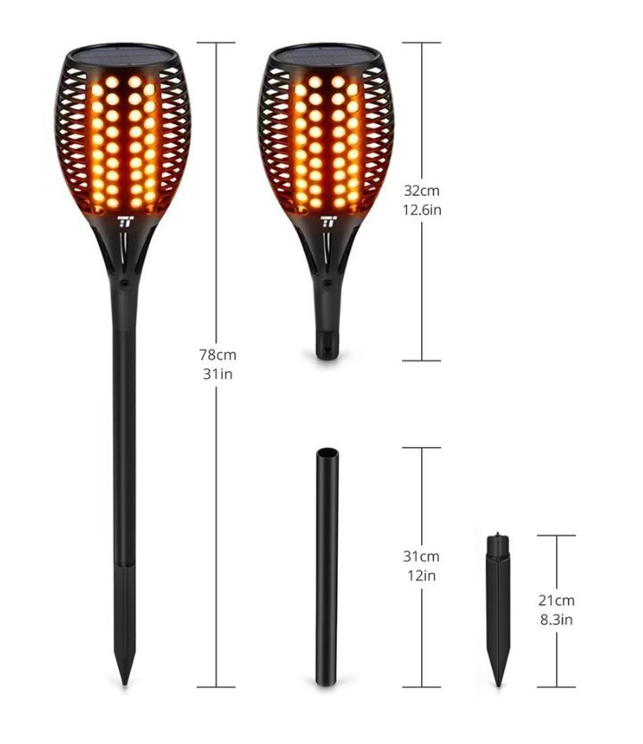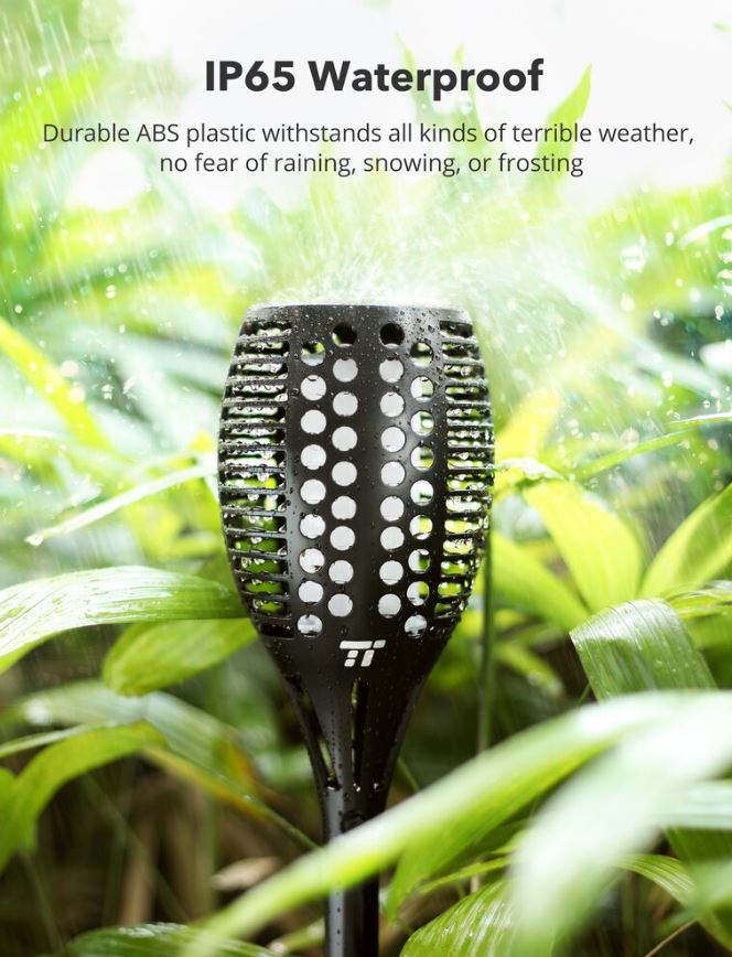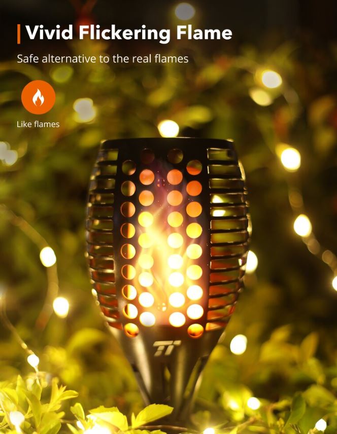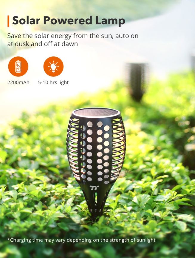 Set 2 lampi solare LED TaoTronics TT-SL004 pentru curte, gradina si balcon, efect torta, Negru