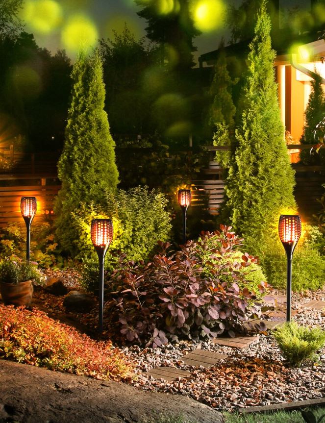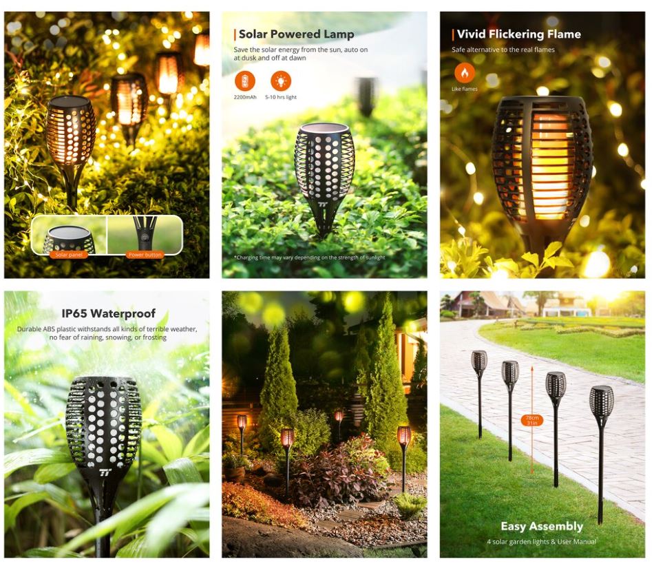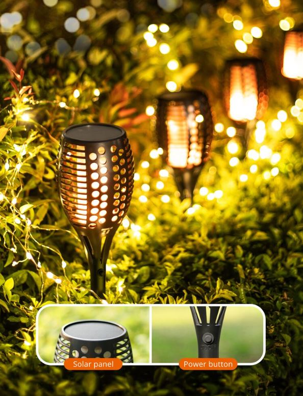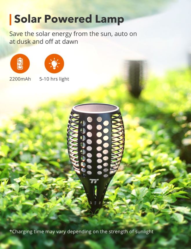 Set 4 lampi solare LED TaoTronics TT-SL004 pentru curte, gradina si balcon, efect torta, Negru