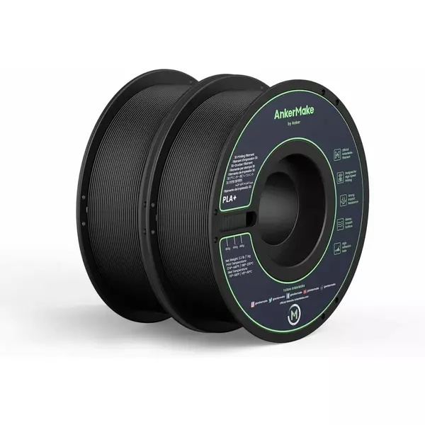 Set de 2x Filament AnkerMake PLA+ pentru imprimanta AnkerMake 3D, 2 kg, proiectat pentru imprimare de mare viteza Negru