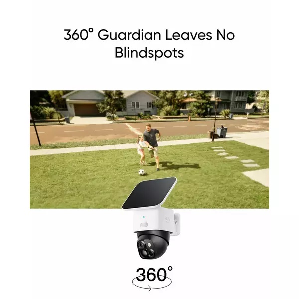 Camera supraveghere eufy SoloCam S340, cu panou solar integrat, dual camera, inteligenta artificiala, rezolutie 3K, rezistenta la intemperii si acoperire de tip Pan & Tilt la 360°.