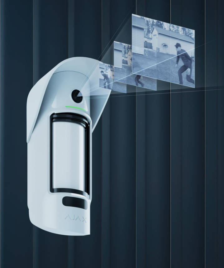 MotionCam Outdoor este echipat cu o cameră pentru a evalua rapid situația din unitatea protejată. Detectorul realizează o serie automată de fotografii de îndată ce detectează o intruziune în teritoriu. O serie de fotografii se combină într-o animație care arată evoluția situației în dinamică. MotionCam Outdoor PhOD poate face o serie de fotografii la cererea utilizatorului din aplicația mobilă Ajax, indiferent de modul de securitate. În plus, dispozitivul poate face fotografii la un program stabilit sau atunci când dispozitivele selectate din sistem declanșează o alarmă.