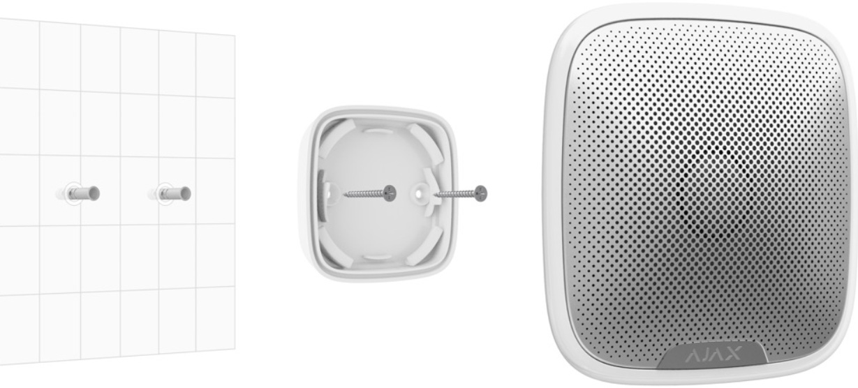 Sirena de exterior este gata să reziste la expunerea la ploaie sau zăpadă și poate fi instalată pe pereții exteriori fără copertina.