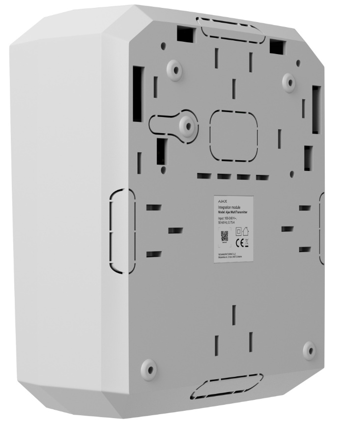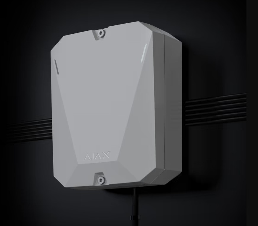 Modulul de integrare MultiTransmitter cu 18 zone cablate, de la Ajax este utilizat pentru a conecta senzori cablati de la alti producatori in sistemul Ajax. Distanta de comunicare cu Hub-ul este de pana la 2.000 m (in zona deschisa), functionand pe protocolul Jeweler cu frecventa de 868.0-868.6 MHz. MultiTransmitter-ul este echipat cu doua tampere (sub capac si pe spate).