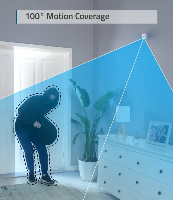 Detecteaza miscarea intr-un camp vizual de 100°, pana la 10 de metri distanta - mai mult decat suficient pentru a asigura o camera dintr-un camin.