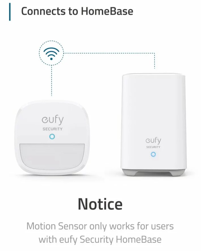 Senzorul PIR se conecteaza la eufy Security HomeBase (neinclus in pachet) si la toate celelalte produse eufy Security.