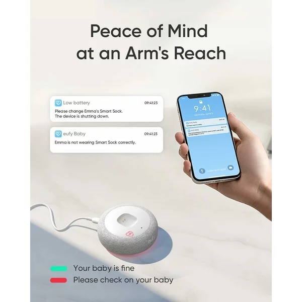 eufy Smart Sock S340 monitorizeaza elementele vitale ale bebelusului tau si sunt disponibile intotdeauna pe smartphone-ul tau.