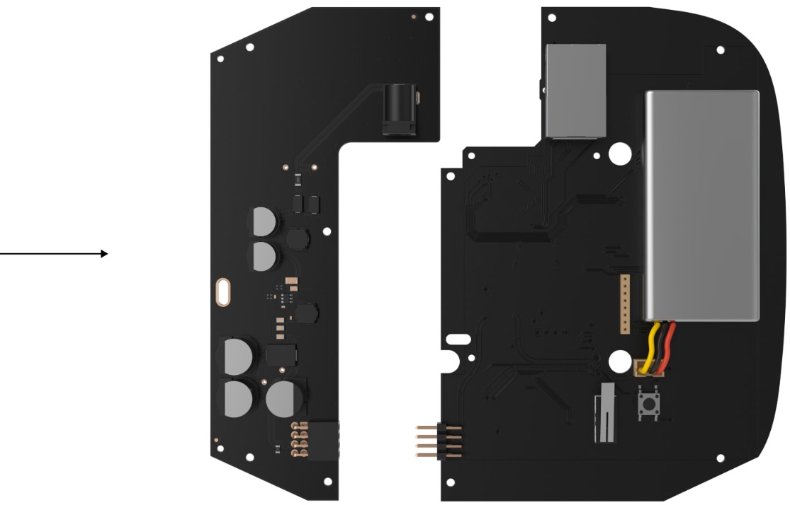 O unitate de alimentare, care conectează panourile de control Hub/Hub Plus și extinctorul de semnal radio ReX la surse de alimentare de joasă tensiune.