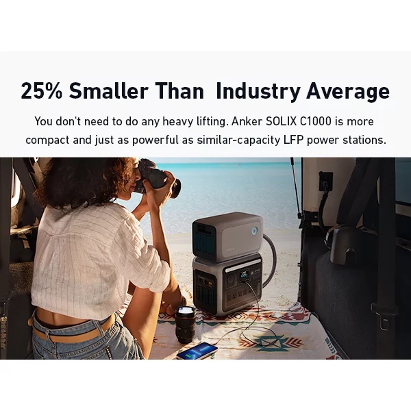 Nu trebuie sa faci nicio ridicare grea. Anker SOLIX C1000 este mai compacta si la fel de puternica precum si statii electrice LFP de capacitate similara.
