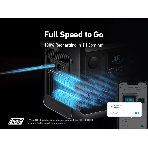 Obtineti o capacitate de 80% a bateriei in doar 43 de minute cu tehnologia de reincarcare UltraFast a Anker SOLIX C1000 si o incarcare completa in mai putin de o ora, tinand pasul cu cele mai aglomerate momente ale vietii. Ideal pentru uz casnic si intreruperi de curent.