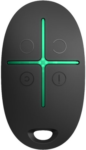 Ajax SpaceControl este o telecomanda cu protecție împotriva clicurilor accidentale. Permite setarea sistemului Ajax în modul armat, noapte sau dezarmat și pornirea unei alarme.