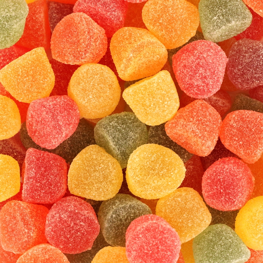 Ingrediente: Zahar, sirop de glucoza, gelifiant (pectina), acidifiant (acid citric), substante de aromatizare, suc obtinut din concentrat de fructe (mure, afine, capsuna, zmeura), coloranti naturali (curcumin, carmine).