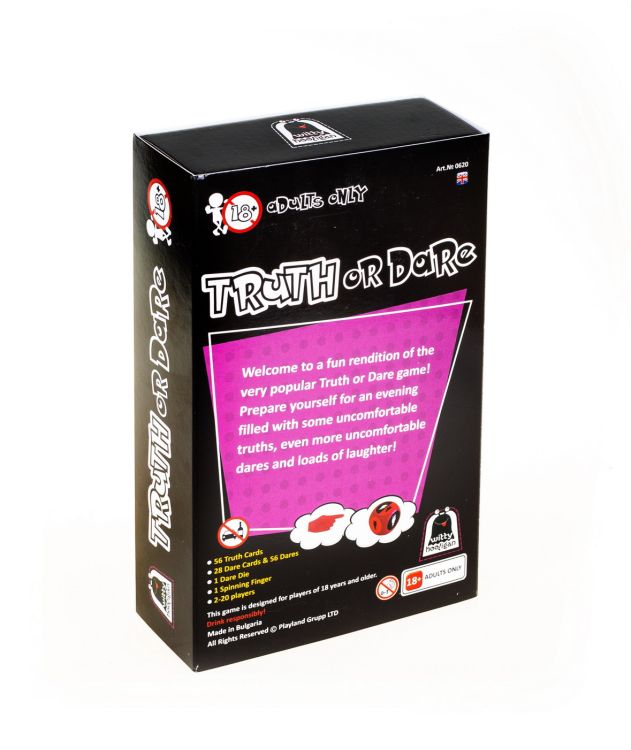 Adevar sau Provocare este un joc pentru adultii peste 18 ani din seria Witty Hooligan. Va trebui sa alegeti intre a va impartasi secretele cu alti jucatori sau a efectua una dintre provocarile cartilor. Pachetul contine 84 de carti, 1 zar, 1 sageata. Jocul se poate juca in 2-20 jucatori.