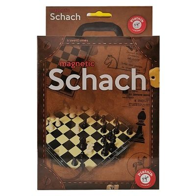 Va oferim jocul clasic de sah intr-o cutie din plastic rezistent care poate fi luata in orice calatorie. Piesele de sah sunt foarte bine finisate si adera foarte bine cu magneti la tabla de joc. Cutia are sertare pentru stocarea pieselor de joc. Dimensiunile tablei de joc 16 x 16 cm. Inaltimea pieselor de sah variaza intre 1 6 cm pionul si 3 2 cm regele. Recomandat pentru jucatori de peste 14 ani. Numar de jucatori 2 ATENTIE Contine piese mici care pot fi inghitite Interzis copiilor sub 3 ani Produs de Piatnik Austria