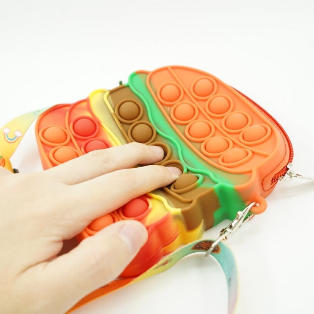 Geanta de umar din silicon Pop it now and flip multicolora hamburger, FLIPPY
