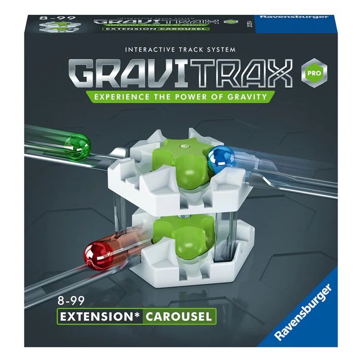 Invartiti caruselul si puneti pista de bile pe un curs complet nou de distractie fascinanta Experimenteaza ersitatea Setul Caruselul are doua niveluri care sunt conectate prin mai multe intrari si iesiri iar piatra poate fi folosita de mai multe ori in timpul unei singure treceri. Bilele care ruleaza pot fie sa se aseze in carusel fie sa inceapa. Odata ce caruselul este in miscare toate bilele parcate sunt trimise pe pista. Cat de des pot bilele sa conduca caruselul intr-o singura tura Poate fi jucat numai impreuna cu setul de baza Gravitrax Pro sau Gravitrax clasic. Sistemul de pista cu bile Gravitrax este extins la infinit cu accesorii si garanteaza o experienta nelimitata de constructie si joaca. Motivele principale sa alegeti gama Gravitrax INOVATIV Sistemul de pista interactiv Gravitrax va permite sa proiectati sa va construiti propriile piste de curse si sa experimentati gravitatia magnetismul repectiv cinetica. JUCARIE STEM Copii cu varstele de peste 8 ani vor putea experimenta jocuri educationale si stiintifice. COMPATIBIL Extindeti cu usurinta complexitatea jocului - Toate seturile sunt compatibile si functionale. IDEE DE CADOU Gravitrax este un cadou ideal de sarbatori si cu ocazia zilelor de nastere pentru copiii si adultii creativi curiosi carora le place sa construiasca. Contine 1 Carusel 1 regulament in lb. romana. Varsta recomandata 8 ani Nr. jucatori 1Specificatii
