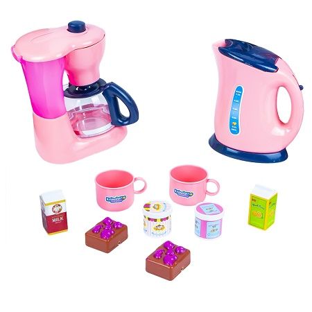 Set aparate casnice filtru cafea fierbator accesorii bucatarie asemanatoarea realitatii incurajeaza jocurile de rol in bucatarie. Caracteristici - set aparate casnice care emuleaza bine realitatea filtru cafea fierbator apa - accesoriile setului cuprind cescute prajituri si erse alimente - culorile aparatelor casnice sunt atractive iar detaliile jucariilor ofera autenticitate experientei jocului cu acestea - incurajeaza jocurile de rol si creativitatea Avertizare Produsul este nou si comercializat in ambalajul original al producatorului. Imaginile de pe acest site au caracter informativ. Produsul nu functioneaza cu baterii. Ambalajul trebuie indepartat recuperat si aruncat de catre un adult inainte de a se da spre utilizare copilului. Nu lasati ambalajele produselor la indemana copiilor. Se recomanda utilizarea produsului sub supravegherea unui adult. Produsul poate contine piese mici care se pot inghiti sau inhala de cei mici existand pericolul de sufocare sau nu este potrivita copiilor mai mici de 3 ani. Pastrati instructiunile si etichetele pentru referinte viitoare. Pastrati produsul departe de foc si nu il lasati in preajma temperaturilor ridicate si a umiditatii. Nerecomandat copiilor cu varsta mai mica de 3 aniSpecificatii