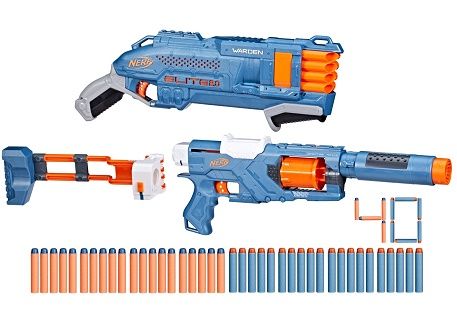 Acest pachet cu 2 blastere este o modalitate excelenta de a incepe sau de a construi colectia ta Nerf Este un set cadou perfect. si cu 2 blastere batalia poate incepe imediat din cutie. Creeaza 6 stiluri diferite de blaster cu blasterul Spectre Rev-5 Are un cilindru rotativ cu 5 sageti prelungire a tevii detasabila material pliabil detasabil si sina tactica. Acest set impresionant Nerf Elite 2. 0 include blasterul Spectre Rev-5 blasterul Warden DB-8 si 40 de sageti cu spuma Nerf Elite. Acest pachet include 40 de sageti Ai suficient pentru a incarca complet ambele blastere si multe altele pentru a reincarca rapid si a continua sa lupti. Atentie Nu lasati ambalajele jucariilor produselor la indemana copiilor. Indepartati orice ambalaj al jucariei produsului inainte de a da jucaria produsul copilului. Va rugam sa supravegheati copilul in timp ce se joaca foloseste acest produs. Pastrati instructiunile si etichetele pentru referinte viitoare. Pastrati jucaria produsul departe de foc feriti jucaria produsul de temperaturi ridicate si umiditate.Specificatii