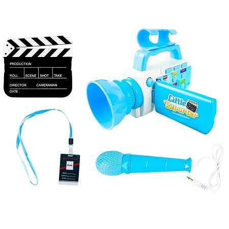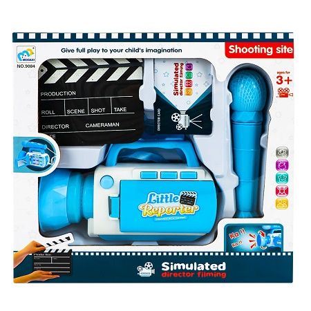 Jucarie de rol reporter cameraman microfon camera de filmat ardezie de film si card de jurnalist educational si interactiv multicolor Caracteristici Microfonul detasabil poate fi atasat la partea superioara a camerei alimentat cu baterie 3xAA nu este inclus dimensiunile camerei cu oglinda desfacuta si microfonul atasat 17x15x14 cm camera emite semnale sonore si se aprinde oglinda de deschidere incorporata in camera alegerea scenelor inregistrate ferma parc concert loc de joaca gradina zoologica plaja Avertizare - Acest produs prin rupere in cazul putin probabil al inghitirii unor astfel de piese consultati de urgenta un specialist - Produsul este nou si comercializat in ambalajul original al producatorului - Imaginile de pe site au caracter informativ - Nuanta tonul si intensitatea culorii pot varia in functie de monitor - Ambalajul trebuie indepartat recuperat si aruncat de catre un adult inainte de a se da spre utilizare copilului - Nu lasati ambalajele produselor la indemana copiilor - Se recomanda utilizarea produsului sub supravegherea unui adult - Produsul poate contine piese mici care se pot inghiti sau inhala de cei mici existand pericolul de sufocare sau nu este potrivita copiilor mai mici de 3 ani - Pastrati instructiunile si etichetele pentru referinte viitoare - Pastrati produsul departe de foc si nu il lasati in preajma temperaturilor ridicate si a umiditatii - Nerecomandat copiilor cu varsta mai mica de 3 ani