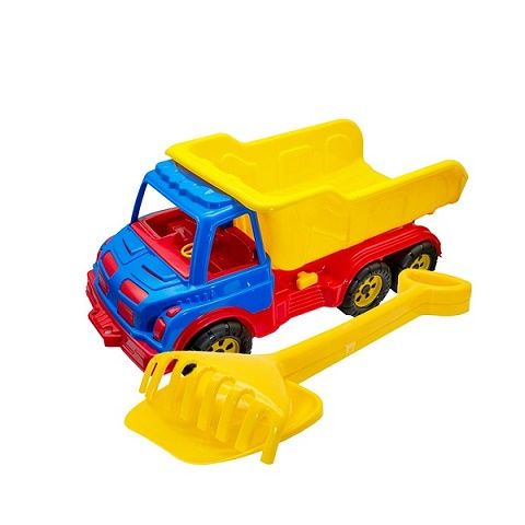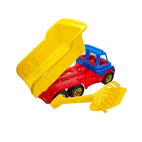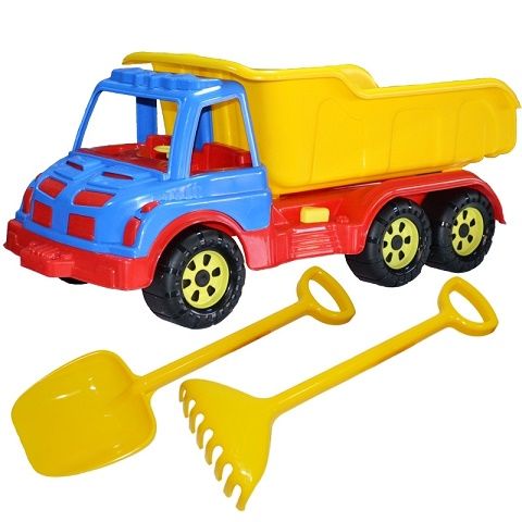 Setul contine camion lopata si grebla Caracteristici camion - Masina are bena basculanta volan ce se poate roti 6 roti silentioase cu striuri antiderapante loc de prindere pentru tractare pe bara din fata. - Camionul este ideal pentru transportarea diferitelor materiale jucarii in spatii interioare sau exterioare dupa dorinta celor mici. - Camionul este confectionat din plastic de calitate rezistent si nedaunator sanatatii. - Jucaria imita realitatea si este destinata stimularii imaginatiei si creativitatii copilului. - Este recomandata copiilor cu varsta de peste 3 ani. - Dimensiuni camion 60x27x25 5 cm. Caracteristici lopata si grebla - Realizate din plastic rezistent. - Detaliile foarte bine realizate. - Abilitati dezvoltate dexteritate coordonare mana-ochi functiile motorii imaginatia. - Dimensiune lopata 51 5x14 2x3 cm. - Dimensiune grebla 45x17x4 8 cm. Acest pachet este produs in propria fabrica de injectie mase plastice ROBEN. Atentie Culorile specificate fac referire doar la nuanta greblei si a lopetii camionul este disponibil intr-o singura combinatie de culori. Avertizare Produsul este nou si comercializat in ambalajul original al producatorului. Imaginile de pe acest site au caracter informativ. Ambalajul trebuie indepartat recuperat si aruncat de catre un adult inainte de a se da spre utilizare copilului. Nu lasati ambalajele produselor la indemana copiilor. Se recomanda utilizarea produsului sub supravegherea unui adult. Produsul poate contine piese mici care se pot inghiti sau inhala de cei mici existand pericolul de sufocare sau nu este potrivita copiilor mai mici de 3 ani. Pastrati instructiunile si etichetele pentru referinte viitoare. Pastrati produsul departe de foc si nu il lasati in preajma temperaturilor ridicate si a umiditatii.Specificatii