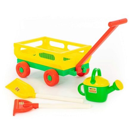 Acest set va deveni o jucarie indispensabila pentru o distractie indelungata a copiilor in exterior sau interior. Caracteristici - Setul contine 1 carucior 1 grebla 1 lopata 1 stropitoare. - Kitul este perfect pentru jocul la cutia cu nisip sau in interiorul locuitei. - Caruciorul este foarte convenabil pentru depozitarea si transportul altor jucarii. - In interiorul caruciorului baza fiind sub forma unui covoras cu insertii pentru cuburi aceasta poate fi suport pentru constructiile celor mici. - Designul caruciorului presupune prezenta a 4 roti din plastic si un maner pentru o tragere usoara. - Culori muticolor. - Setul ii dezvolta copilului abilitatile motorii fine imaginatia si creativitatea. - Ambalaj plasa. Dimensiune carucior 85x29x21 cm lungimea manerului 43 cm Avertizare Produsul este nou si comercializat in ambalajul original al producatorului. Imaginile de pe acest site au caracter informativ. A nu se arunca in foc A nu se dezasambla A nu se lasa la indemana copiilor Ambalajul trebuie indepartat recuperat si aruncat de catre un adult. Nu lasati ambalajele produselor la indemana copiilor. Se recomanda utilizarea produsului sub supravegherea unui adult. Produsul poate contine piese mici care se pot inghiti sau inhala de cei mici existand pericolul de sufocare sau nu este potrivita copiilor mai mici de 3 ani. Pastrati instructiunile si etichetele pentru referinte viitoare. Pastrati produsul departe de foc si nu il lasati in preajma temperaturilor ridicate si a umiditatii. Datorita masurarii manuale a produsului poate exista o diferenta minora fata de dimensiunea reala a produsului.