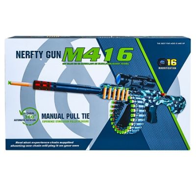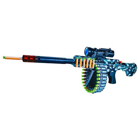 Orice baietel iubeste sa creada ca este un mic erou si ca poate salva lumea. Aceasta pusca cu siguranta il va incanta atunci cand va intra in rolul personajului-erou. Caracteristici - Jucaria contine arma cu luneta si incarcator circular 24 gloante din spuma EVA cu ventuze. - Mitraliera are incarcator care se roteste 360 grade. - Luneta mareste de 16 ori. - Inainte de tragere este necesara asamblarea mitralierei se fixeaza teava prin imbinare se atasaza luneta si incarcatorul. In prealabil sunt incarcate gloantele in incarcator. Dupa ce arma este asamblata aceasta se armeaza se fixeaza tinta si se trage. - Produsul este realizat din plastic rezistent non-toxic. - Jucaria se pate folosi atat pentru joaca in interior cat si in aer liber. Dimensiune arma aproximativ 23x5x64 cm Avertizare Produsul este nou si comercializat in ambalajul original al producatorului. Imaginile de pe site au caracter informativ. Produsul nu functioneaza cu baterii. Bateriile se introduc in pozitia corecta respectandu-se polaritatea. Compartimentul bateriilor trebuie sa fie curat. Bateriile epuizate se schimba si se recicleaza conform normelor in vigoare. In cazul neutilizarii jucariei pentru mai mult timp se scot bateriile pana in momentul refolosirii. Ambalajul trebuie indepartat recuperat si aruncat de catre un adult inainte de a se da spre utilizare copilului. Nu lasati ambalajele produselor la indemana copiilor. Se recomanda utilizarea produsului sub supravegherea unui adult. Produsul poate contine piese mici care se pot inghiti sau inhala de cei mici existand pericolul de sufocare sau nu este potrivita copiilor mai mici de 3 ani. Pastrati instructiunile si etichetele pentru referinte viitoare. Pastrati produsul departe de foc si nu il lasati in preajma temperaturilor ridicate si a umiditatii. Nerecomandat copiilor cu varsta mai mica de 8 aniSpecificatii